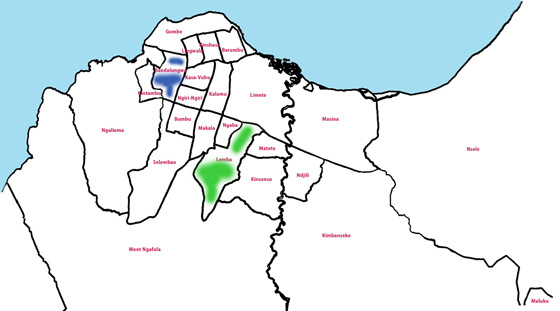 昨日の記事の補足ですが、キンサシャ大学があるレンバの位置は、緑色のところ、バンダルンガは、青色のところです。